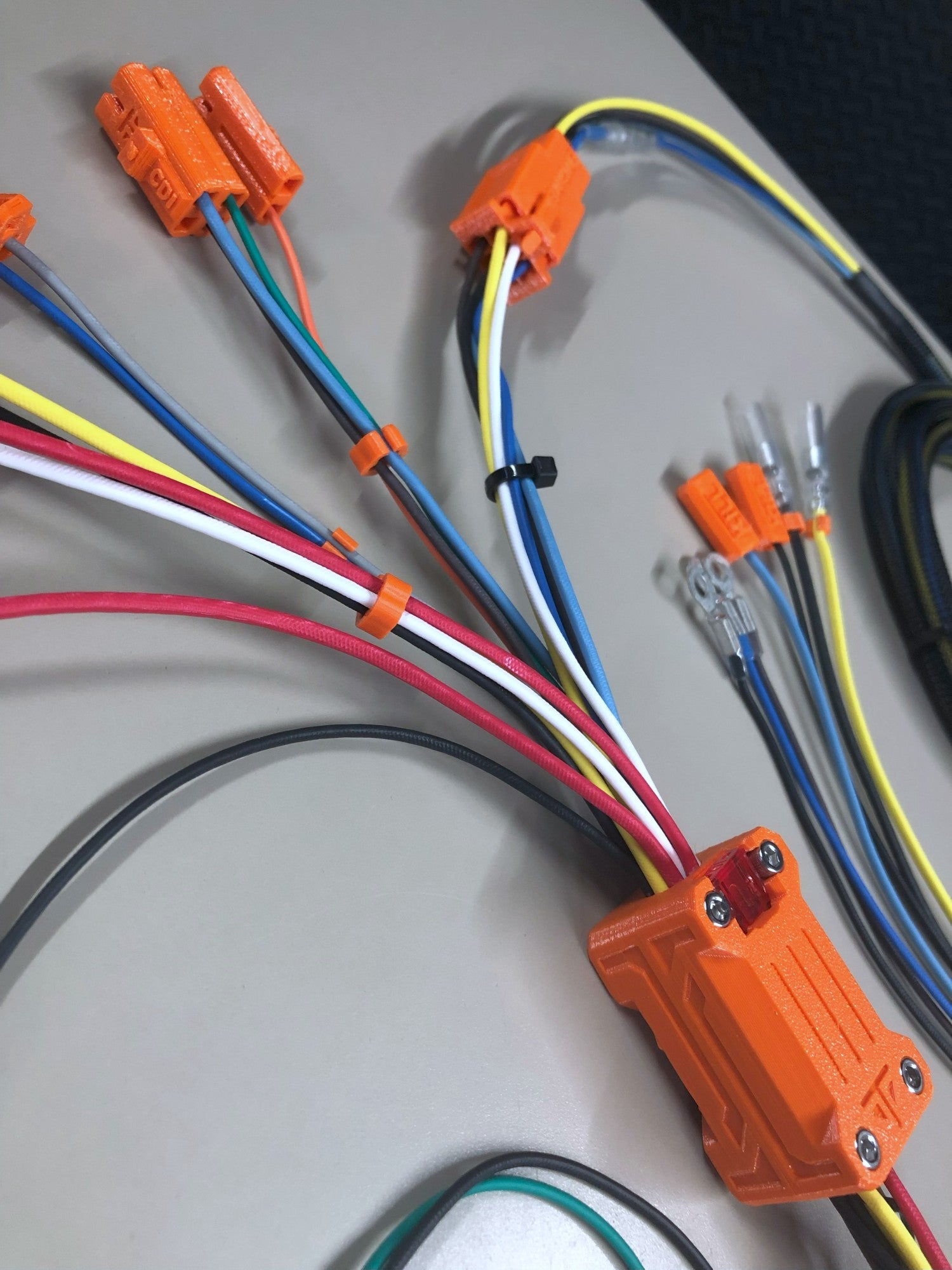 The connector material is Polyethylene Terephthalate Glycol (PETG) thermoplastic selected for a better balance of UV resistance, chemical resistance, and less water absorption. Compared to nylon, PETG tends to be more stable and keep its strength over time despite frequent exposure on our karts. This should be the last harness you have to buy for a good while.